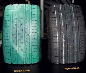 Аквапланирование — неприятный эффект. Избежать его позволяют конструктивные особенности, дизайн протекторной секции в виде продольных каналов разнообразной глубины. Гладкие стенки этих полостей не позволяют воде надолго задерживаться в углублениях. Благодаря этому сокращается тормозной путь на мокром асфальте, а движение в глубоких лужах стаёт безопаснее.